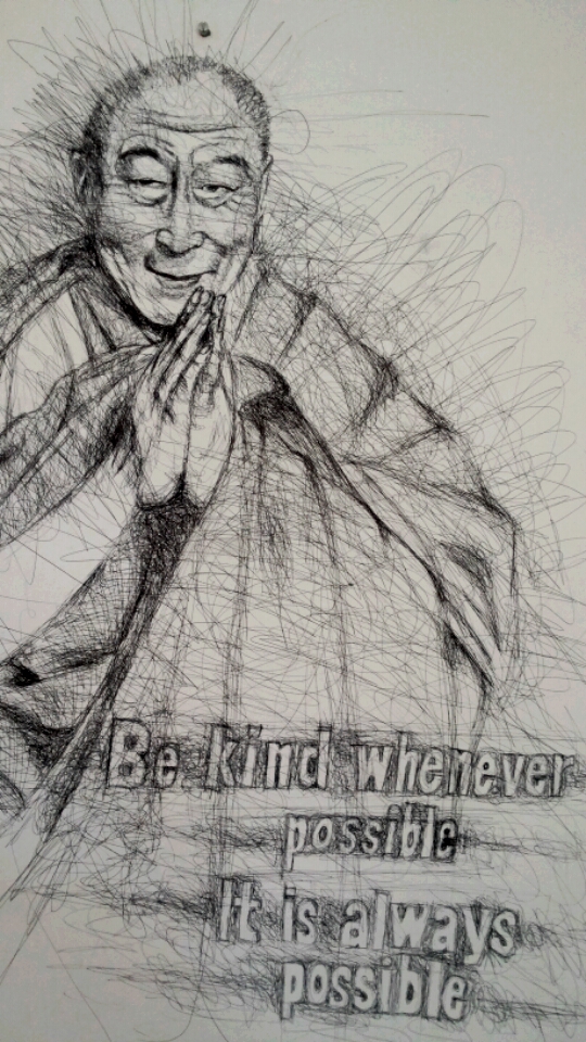 photo: k.bell.  Ink art on the wall at Zsotel, Bir, India