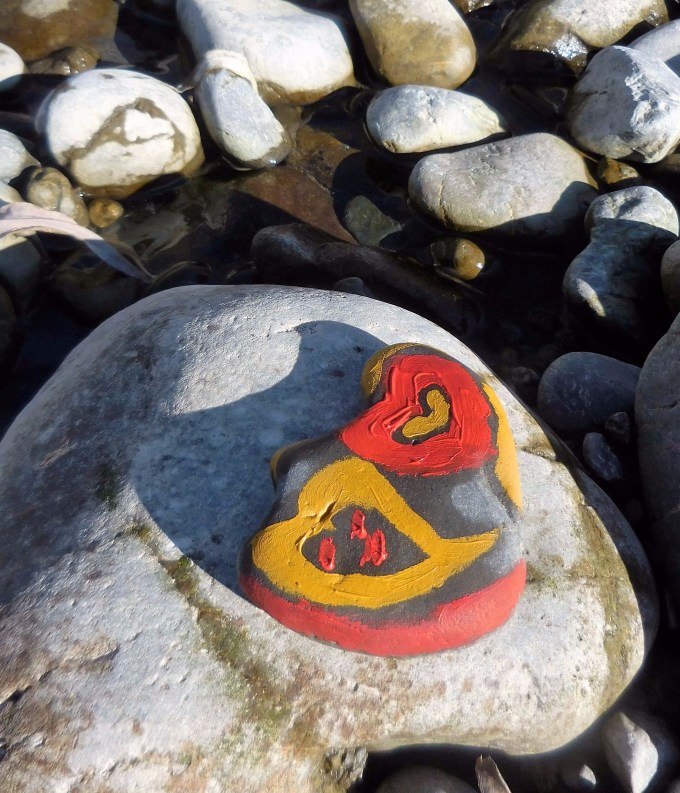 Love Terma. I’d eaten lunch sitting on the stones by the river. I was drawn to a love heart in the hundreds of stones in front of me. When I went up close it wasn’t one stone it was the juxtaposition of three stones at the angle I was sitting.