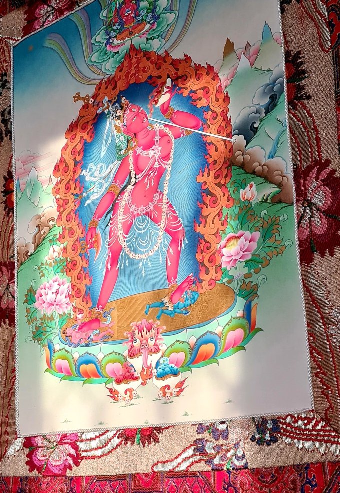 Vajrayogini is a tantric Buddhist female Buddha and dakini (sky-dancer). Vajrayogini’s essence is ‘great passion’, a transcendent passion free of selfishness and illusion. She intensely works for the wellbeing of others and for the destruction of ego clinging.