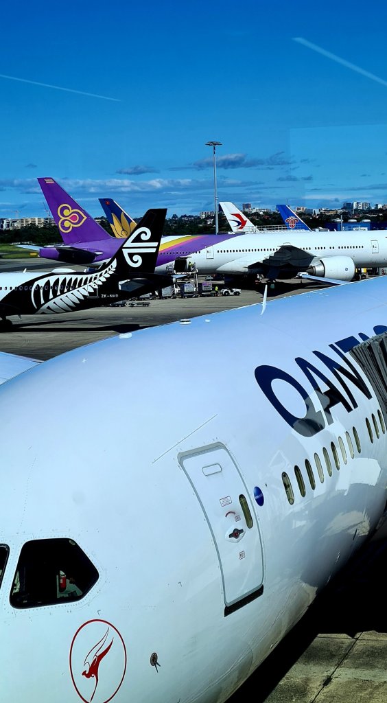 Sydney airport. Yesterday. Strong winds reduced take off and landings to one runway.