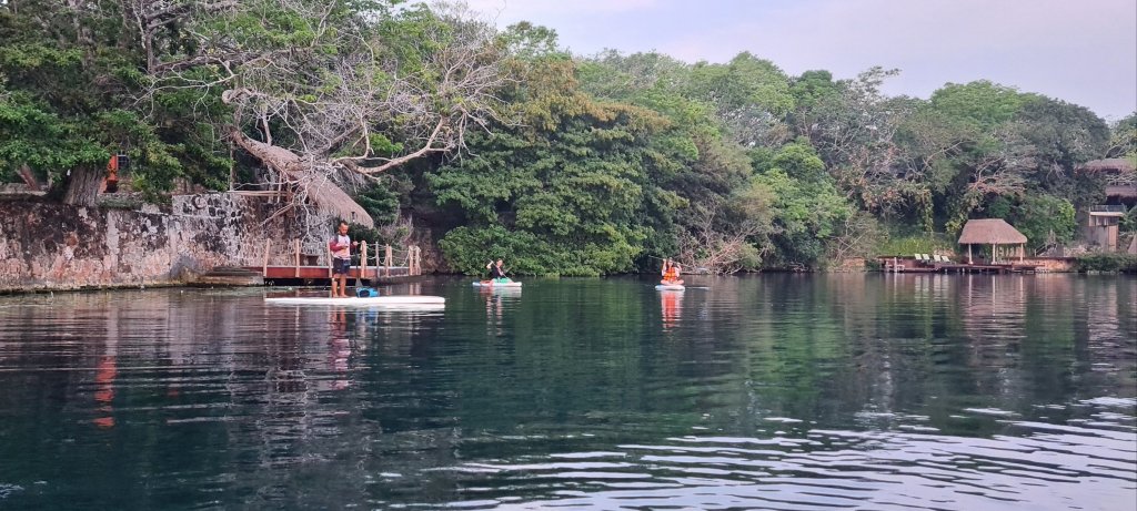 What a treat on a still, quiet, dark morning. Hot and humid.  Bacalar Laguna must be one of the worlds perfect locations for sunrise and sunset boarding. Especially with a skilled guide, David from Adventure Labs in Bacalar.